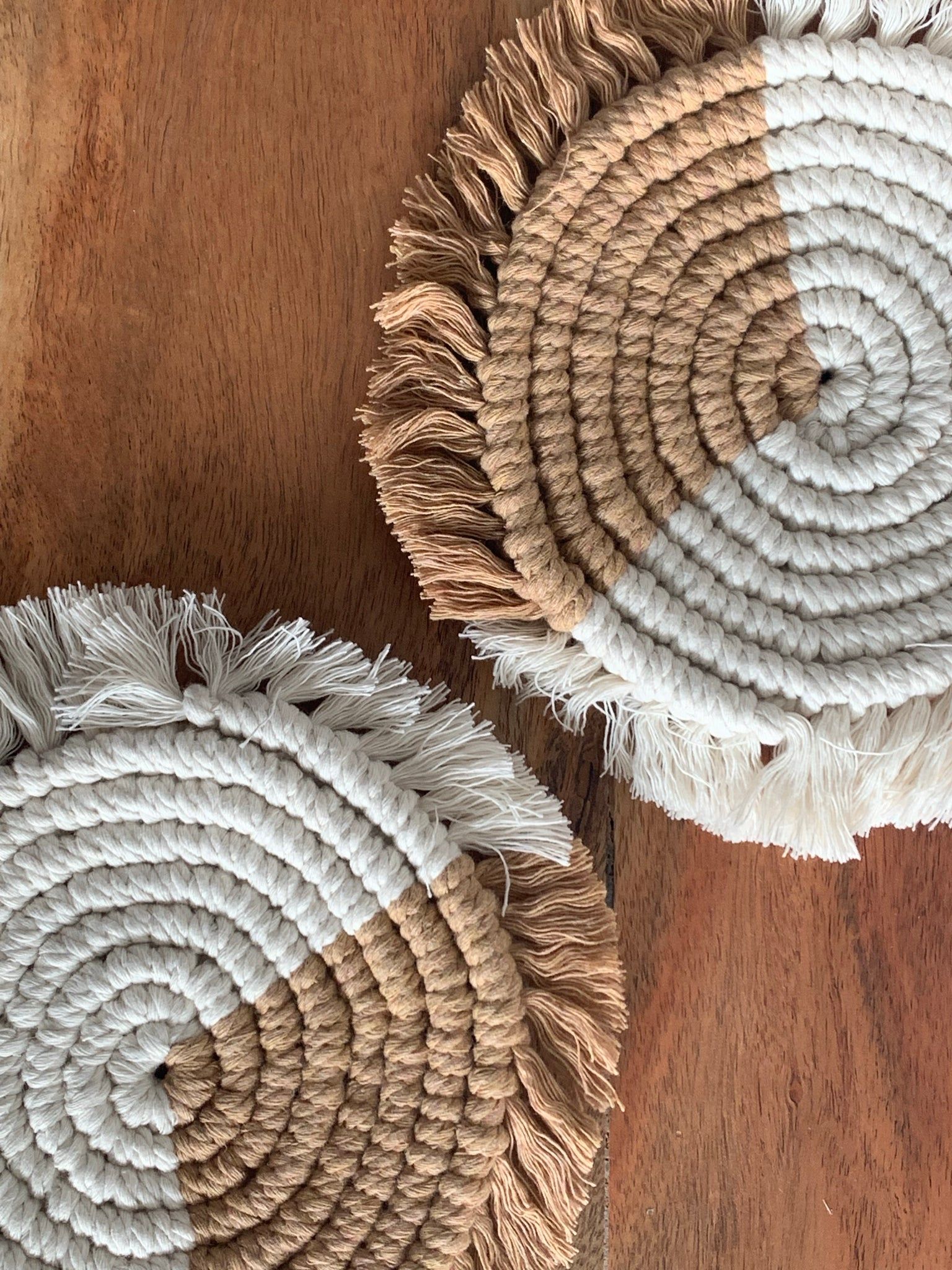 Macramé Drink Coasters; (7inch) Macramé Drink Coasters; (7inch) Macramé Drink Coasters; (7inch)